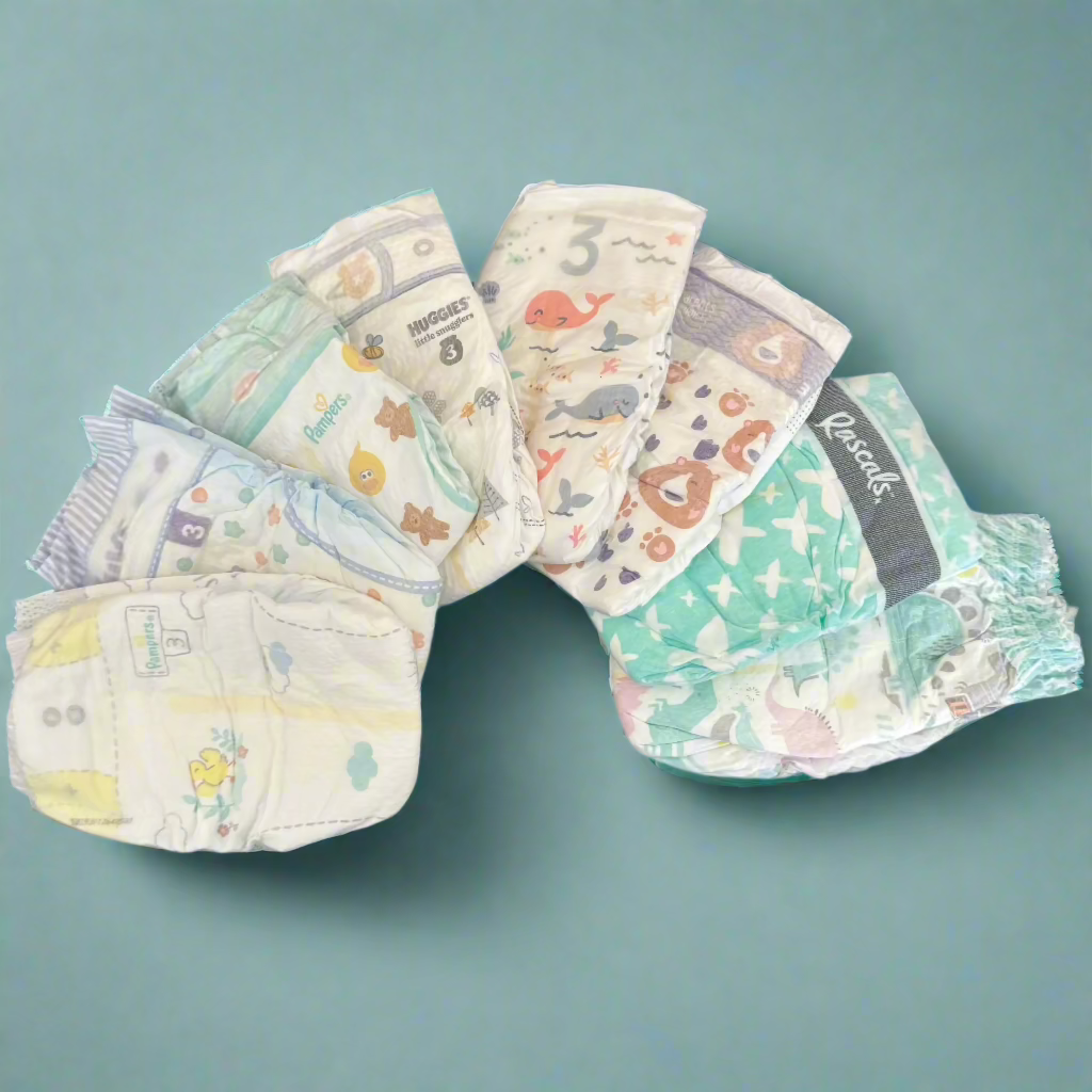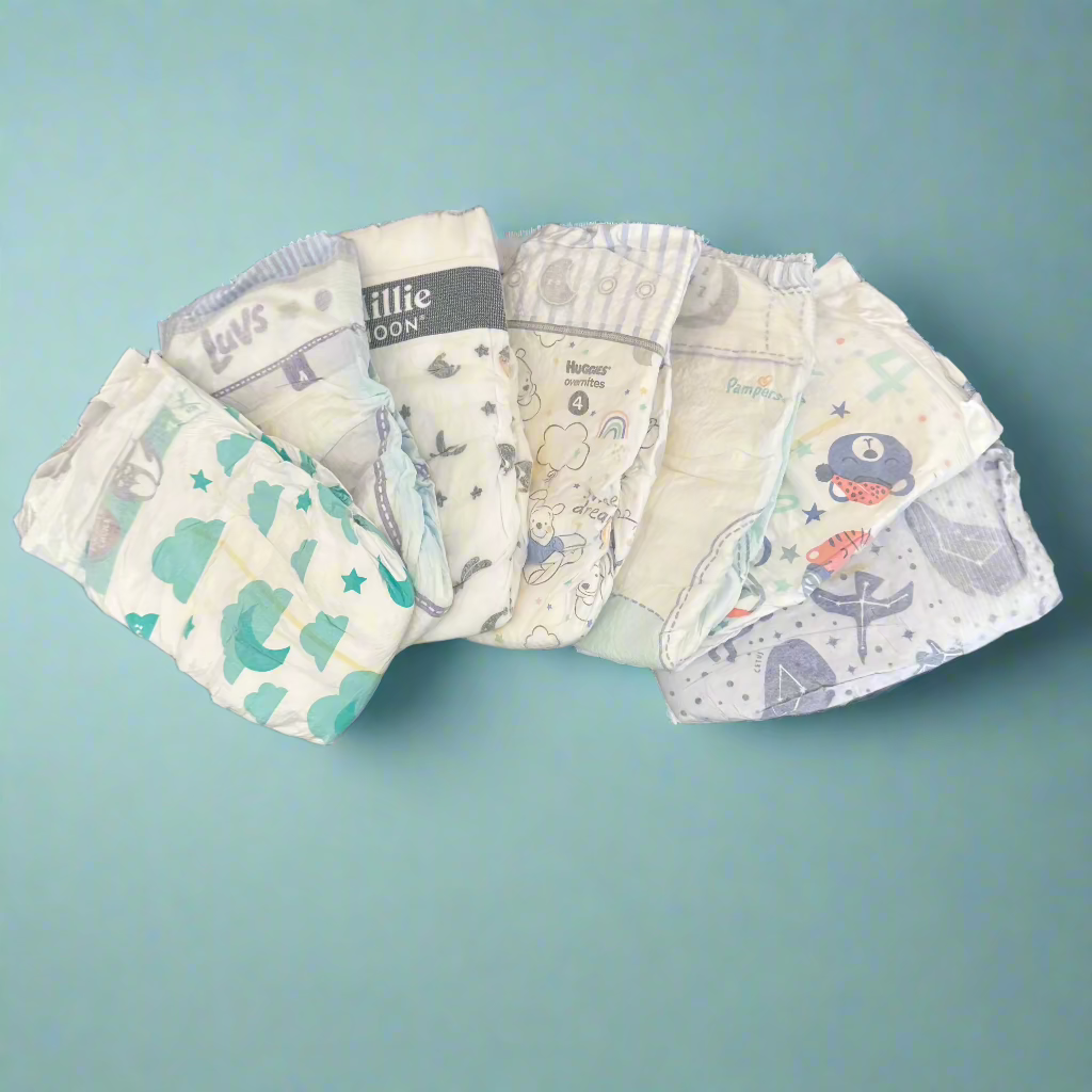 Discover your perfect diaper match with our customizable variety pack! Choose up to 6 different brands and the size that fits your little one best.